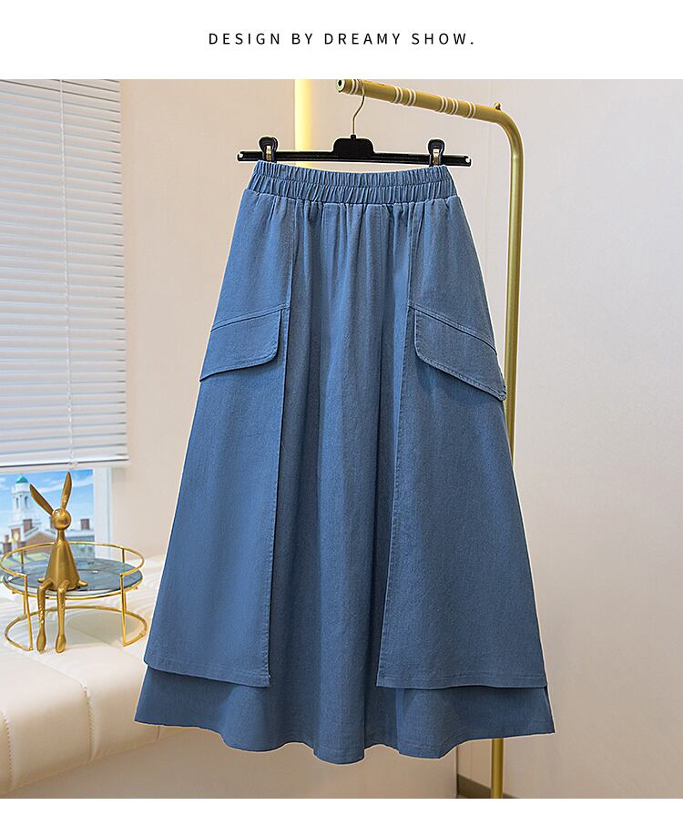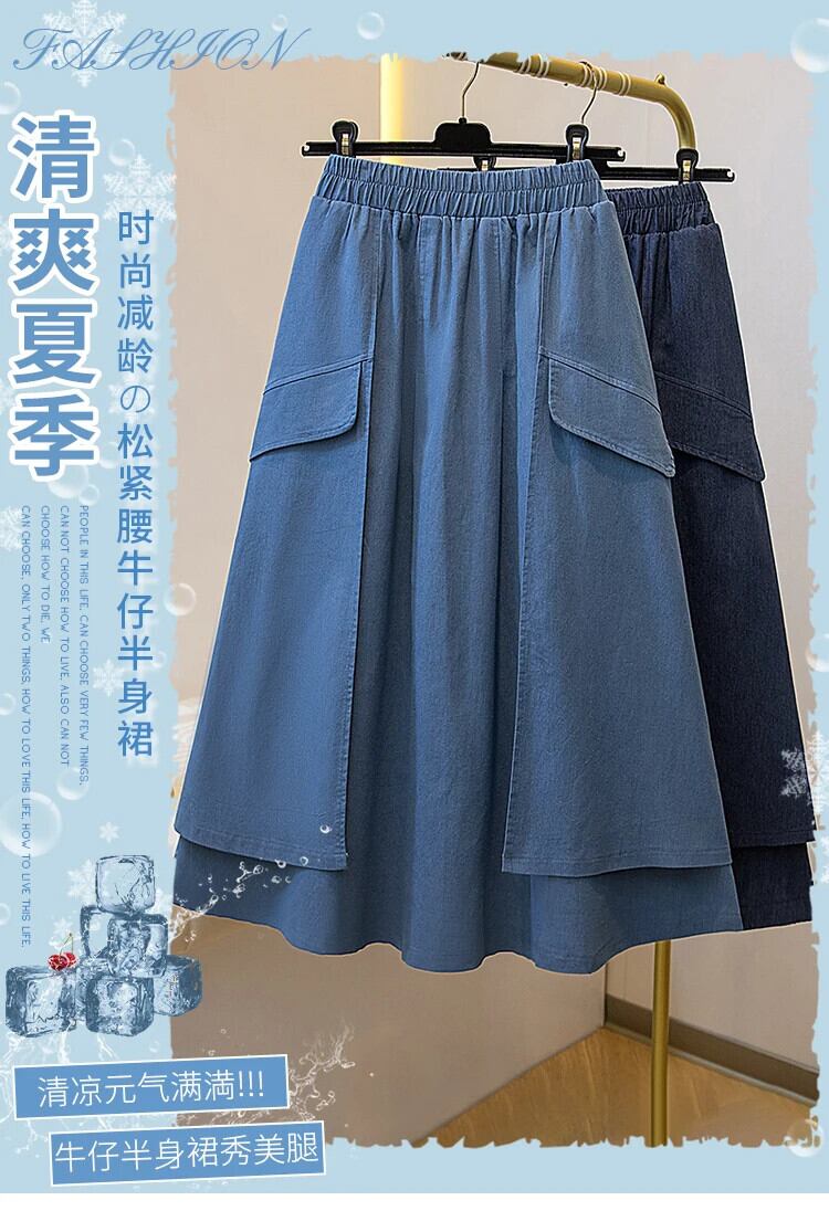2024 夏ウエストミドル丈 A ラインデニムスカートレディース夏薄手 サマー 夏物 Aライン