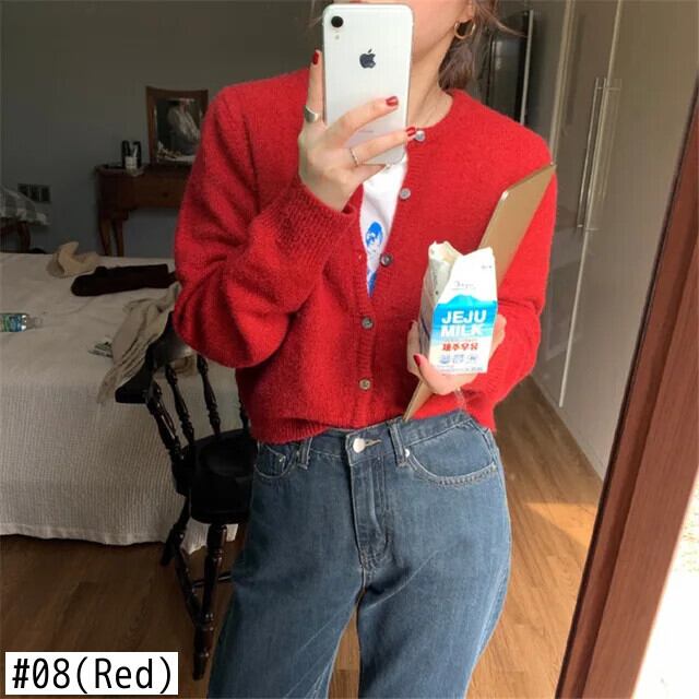 ラウンドネックニットカーディガン秋冬ルーズフィットアウタートップフレンチセーター オータム 秋物 ウィンター 冬物 Oネック