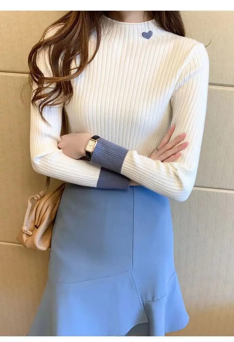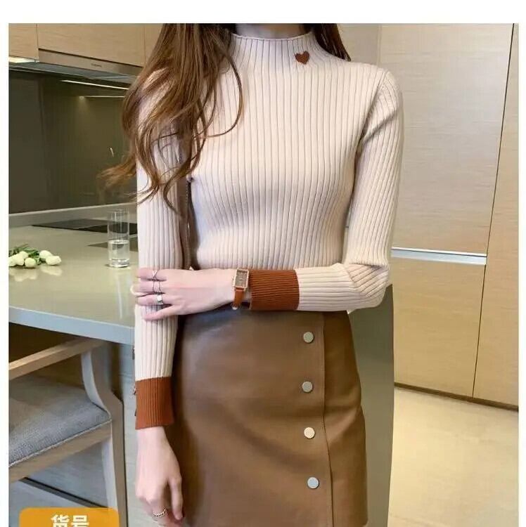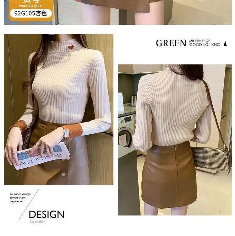 Love ハーフタートルネックニット秋と冬ボトリングセータースリム オータム 秋物 ウィンター 冬物