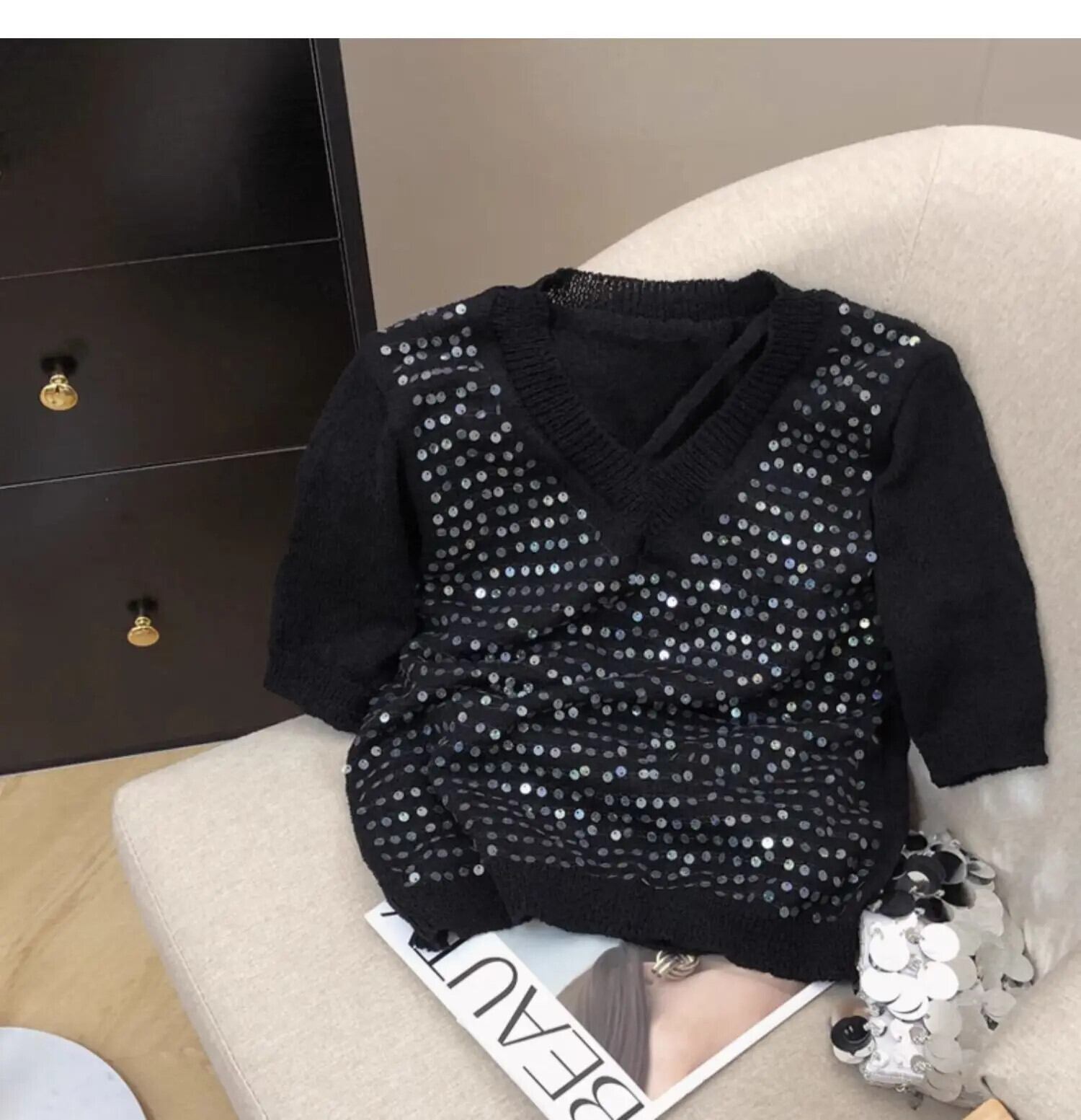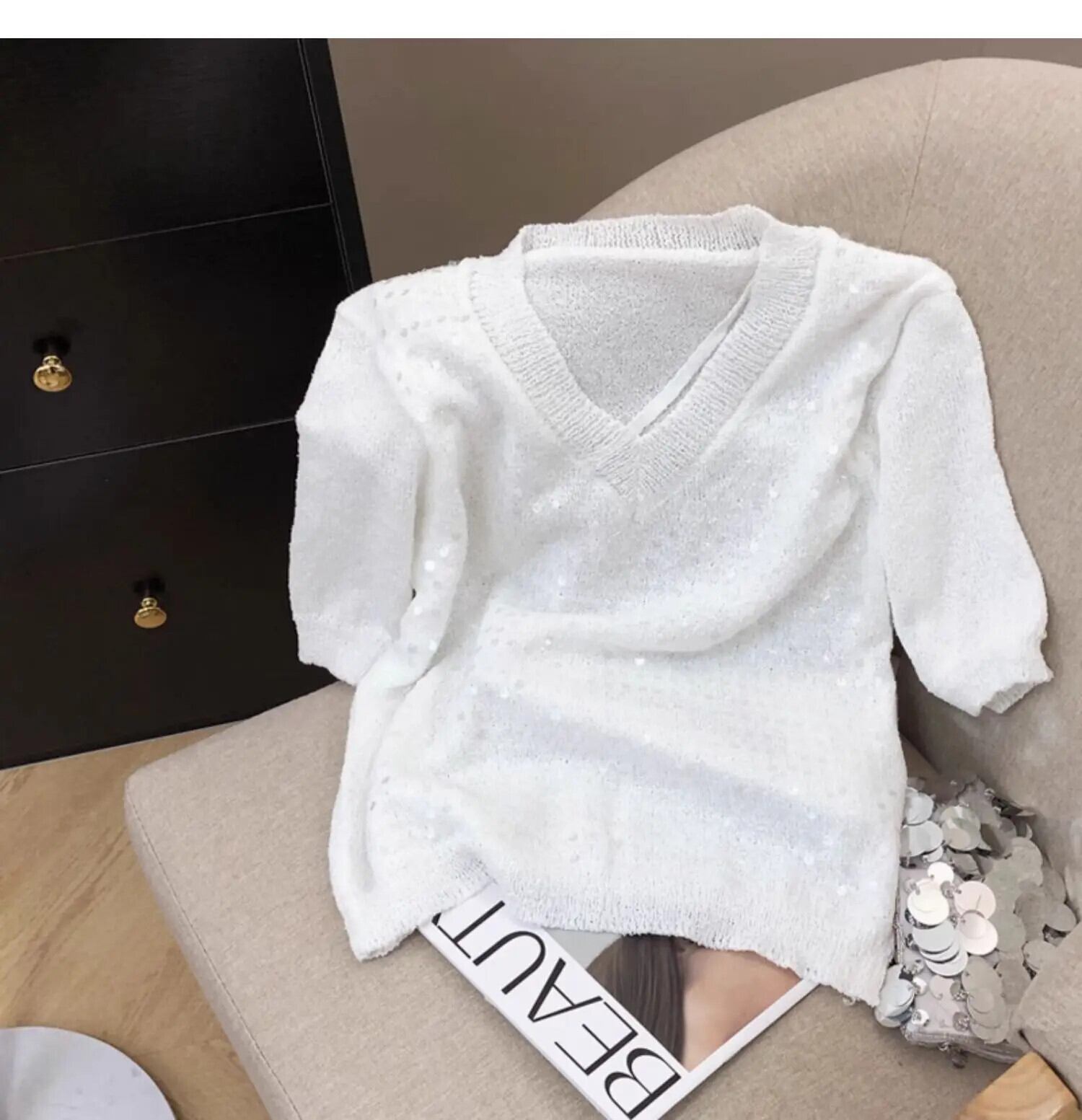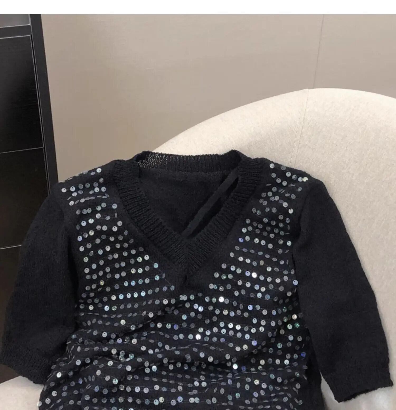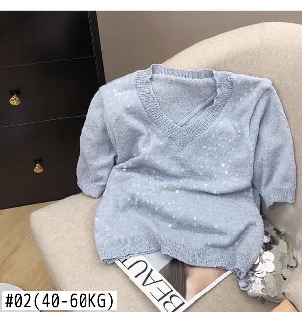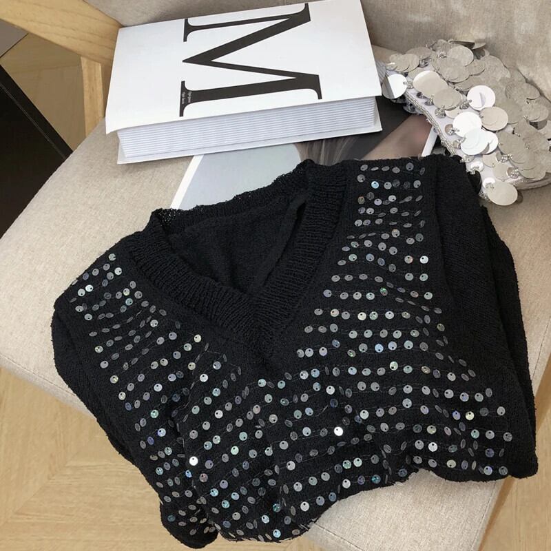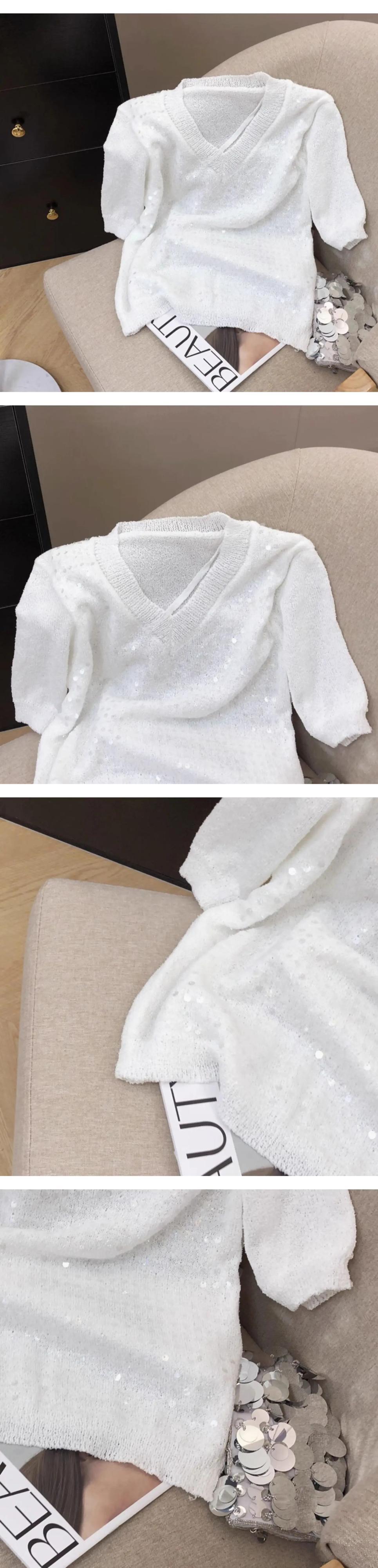 甘いスパンコール半袖Tシャツレディースサマーニットユニークトップス ショート ハーフスリーブ 大人ガーリー スウィート キュート カジュアル 夏物