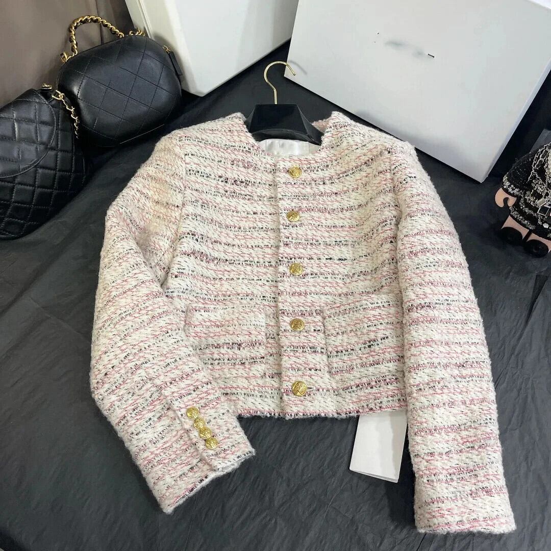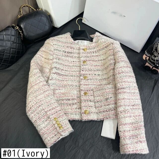 春秋シックツイードコートシングルブレストストライプオフィスレディ生き抜くジャケット スプリング 春物 オータム 秋物 会社 学校 通勤や通学にも
