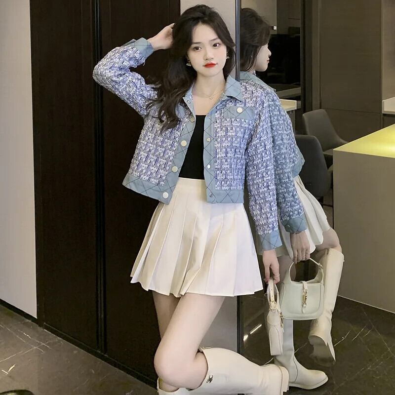 レディース春秋ツイードシックコート Casaco Feminino Chaquetas Para es Jaqueta スプリング 春物 オータム 秋物