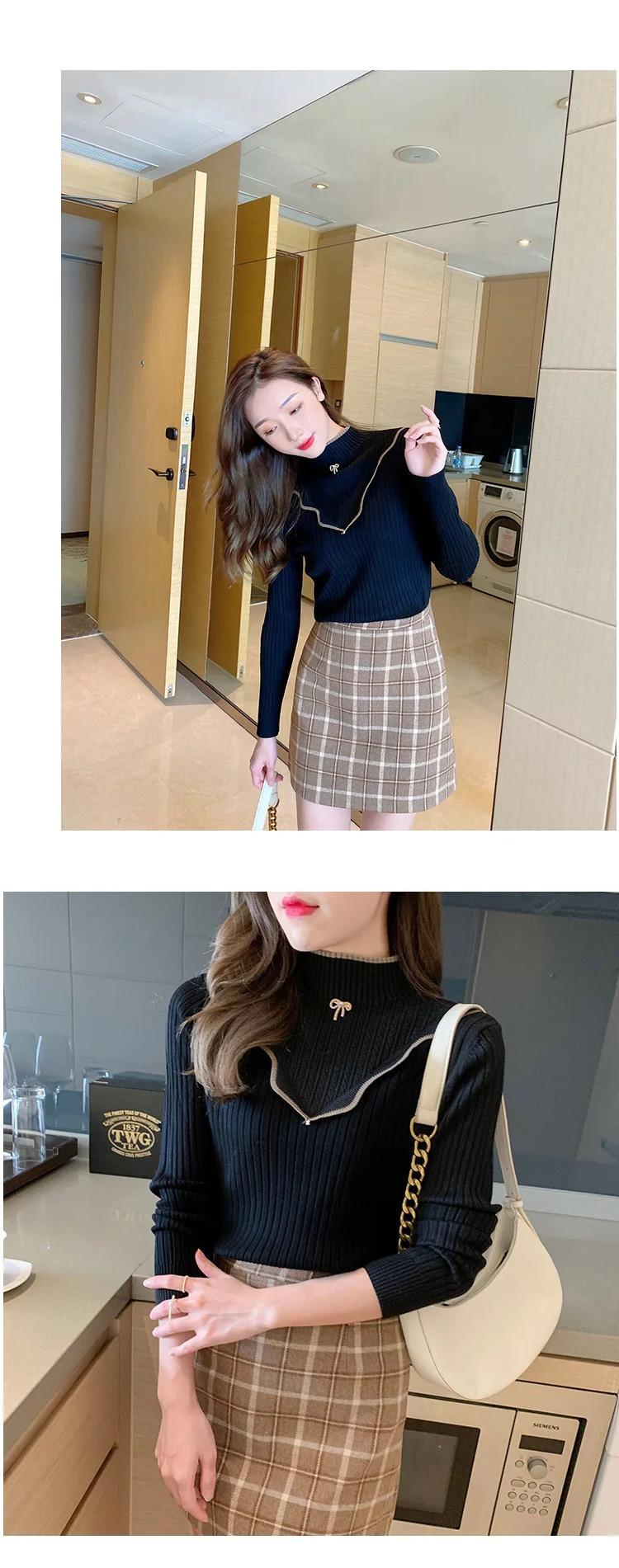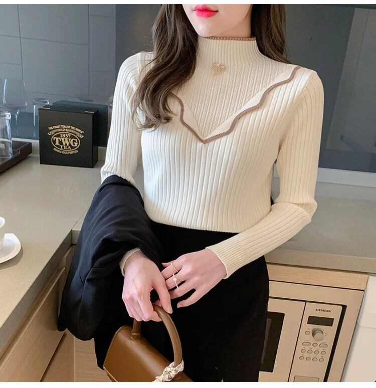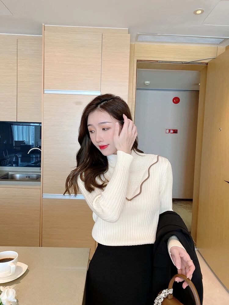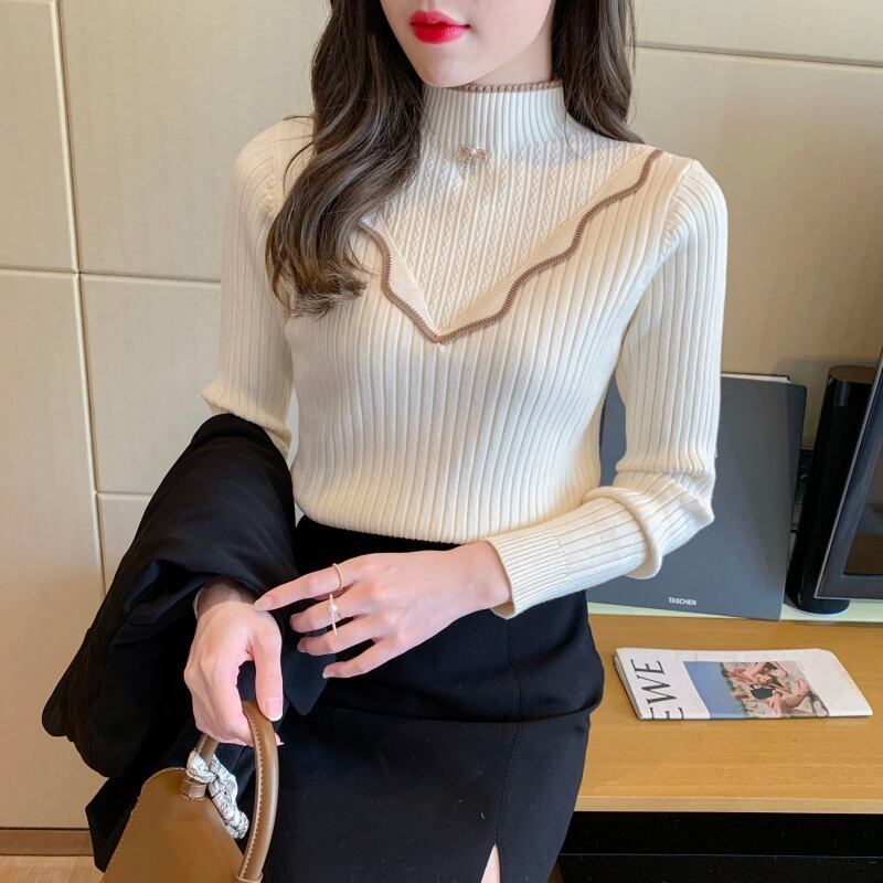 2024秋 ハーフネック厚手ニットセーター シンプル オータム 秋物