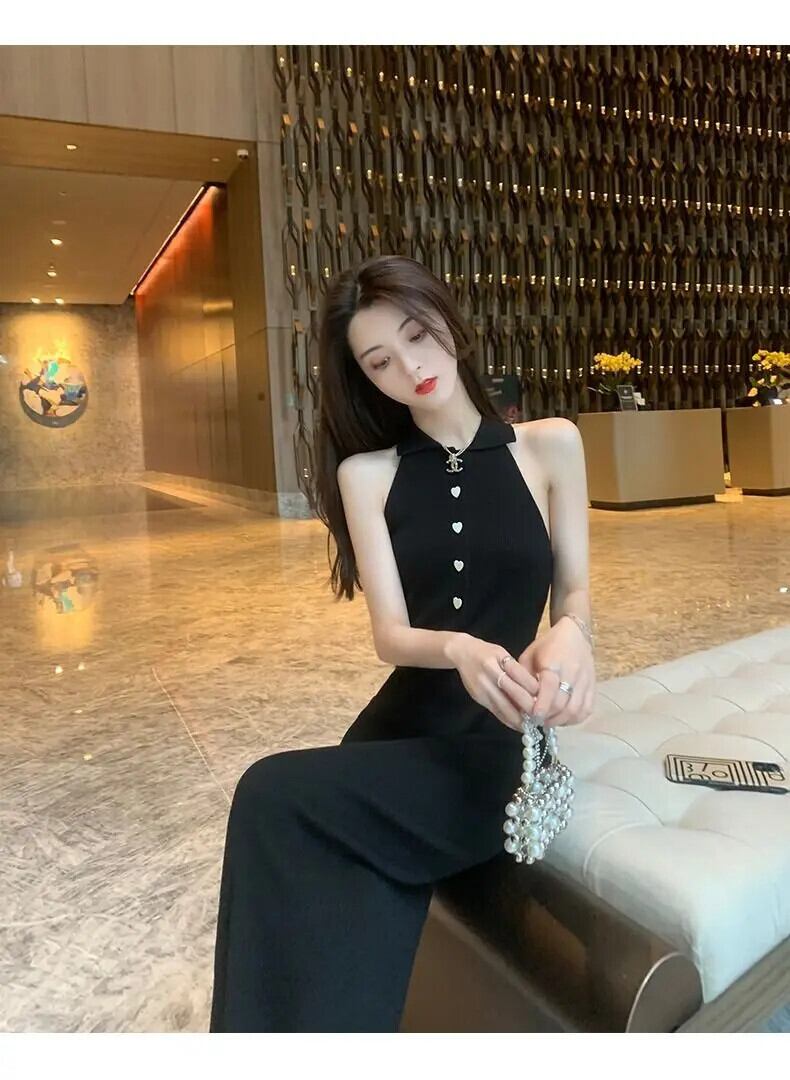 ノースリーブサマースタイルロングブラックニットドレスセーター Vestidos Feminino 夏物