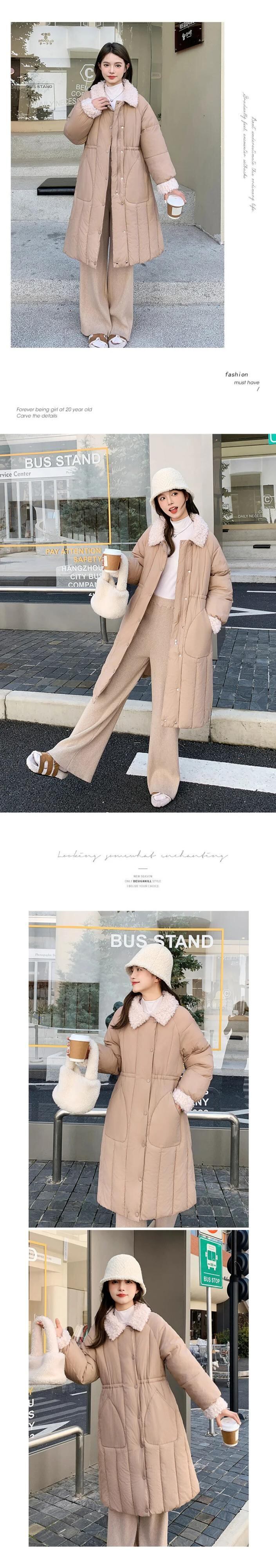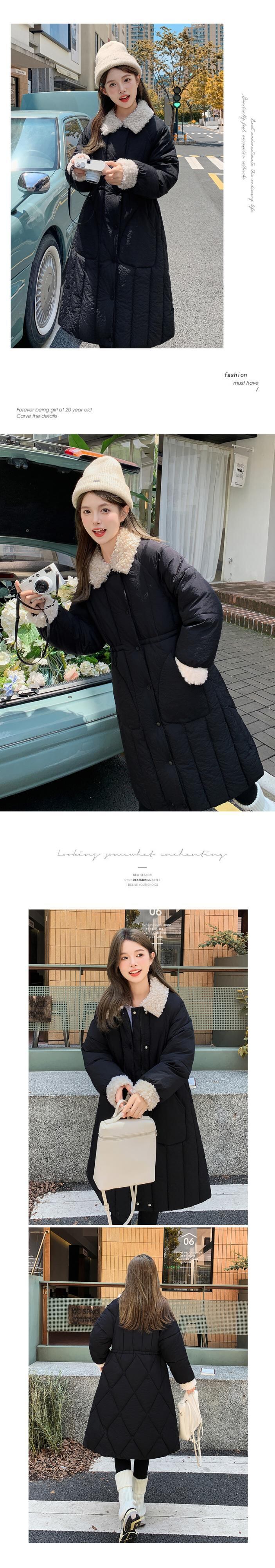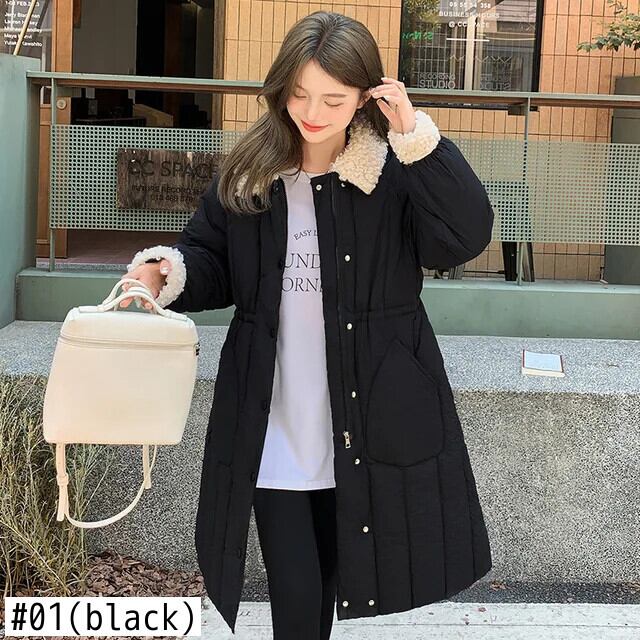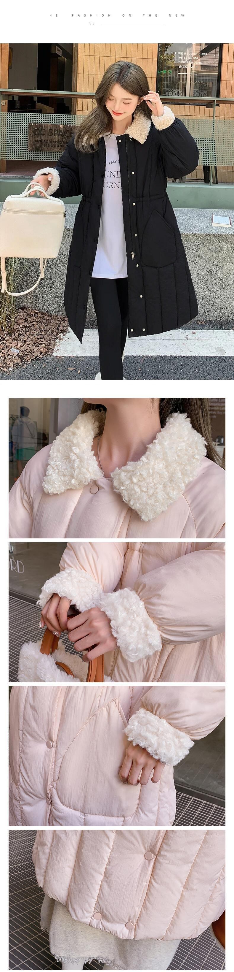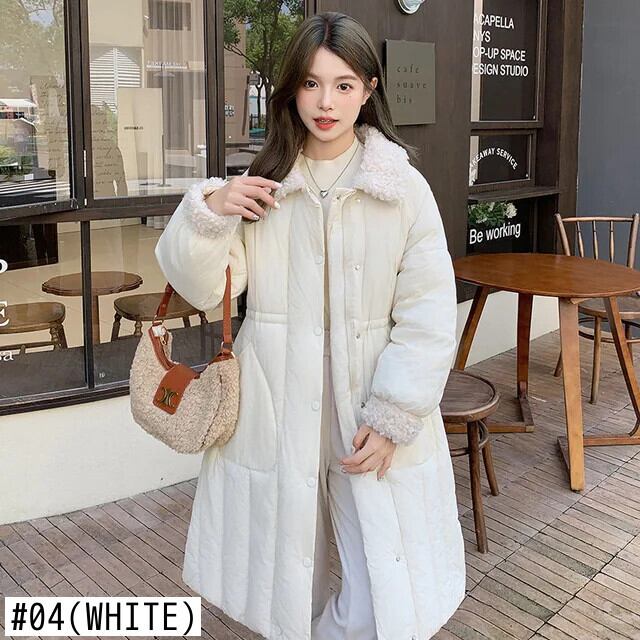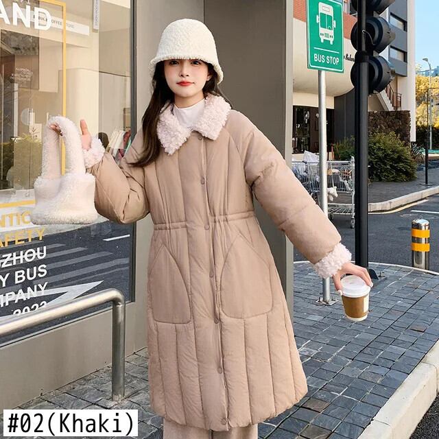 ラムヘアカラー シンチ レディース ロング ダウン コットン ジャケット ソリッド シングルブレスト パーカー ソリッドカラー