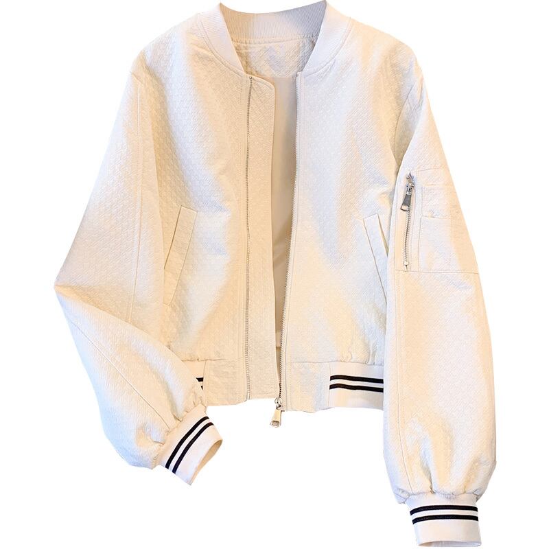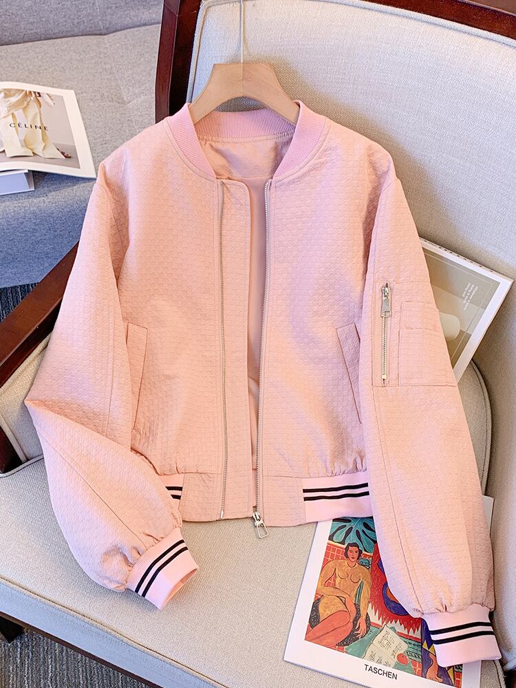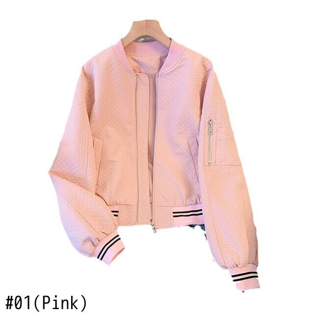 ピンクホワイトショートコートレディース春秋ルーズベースボールジャケット スプリング 春物 オータム 秋物