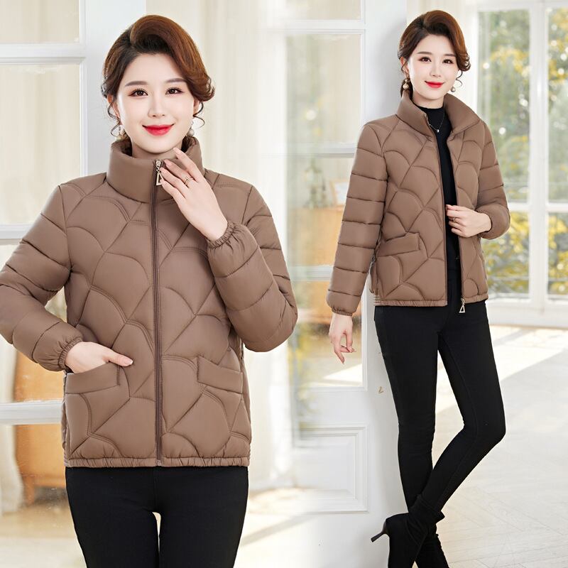 軽量立ち襟ソリッドカラーパーカーママウォームダウンコットンコート