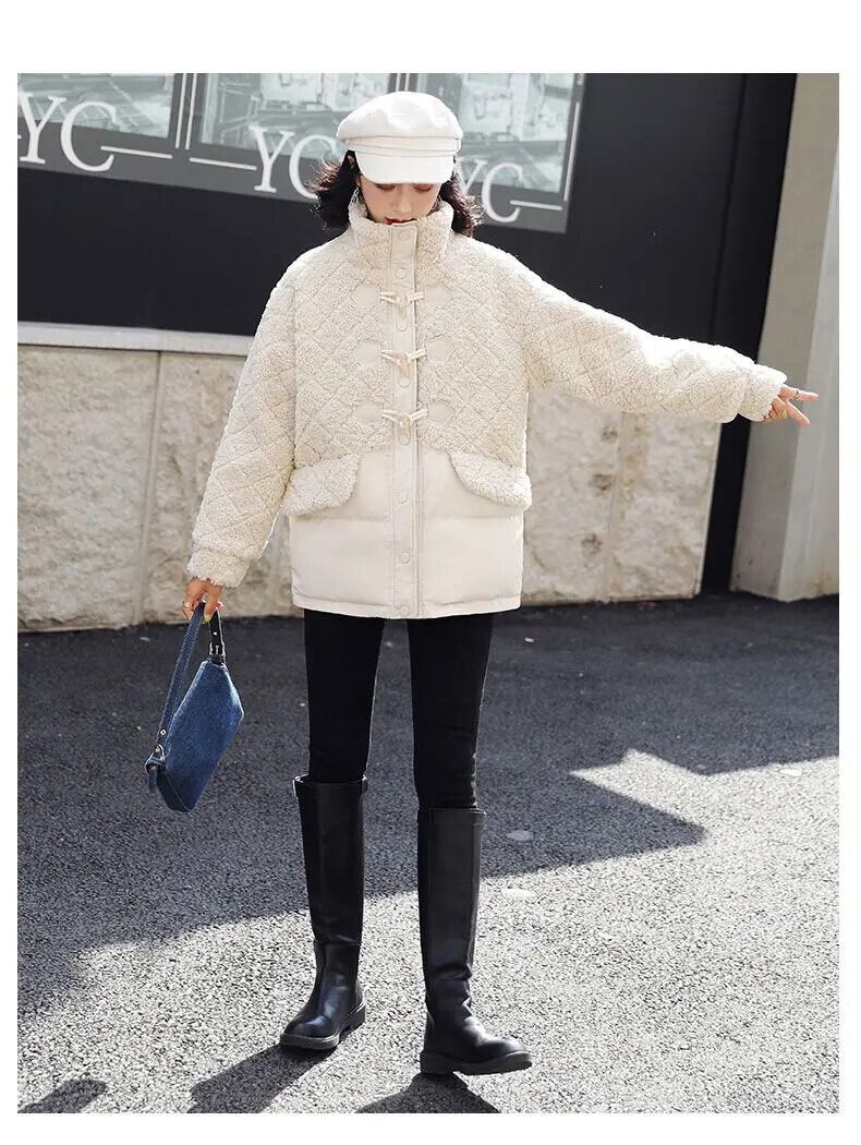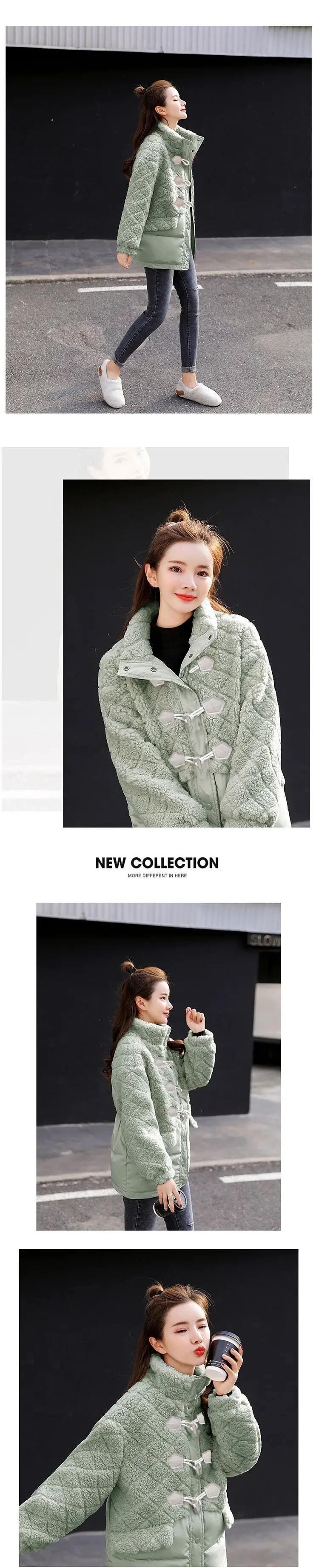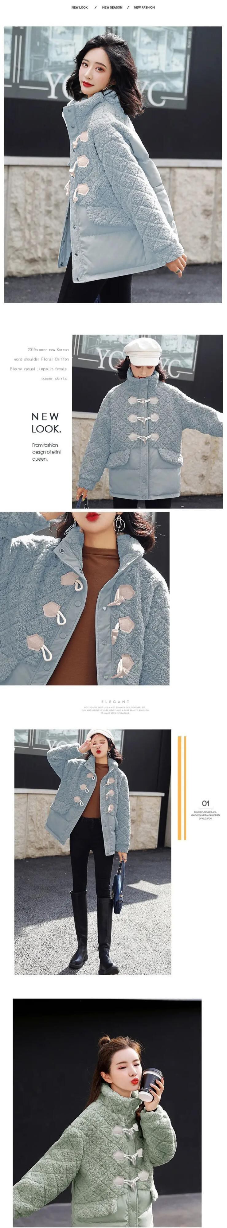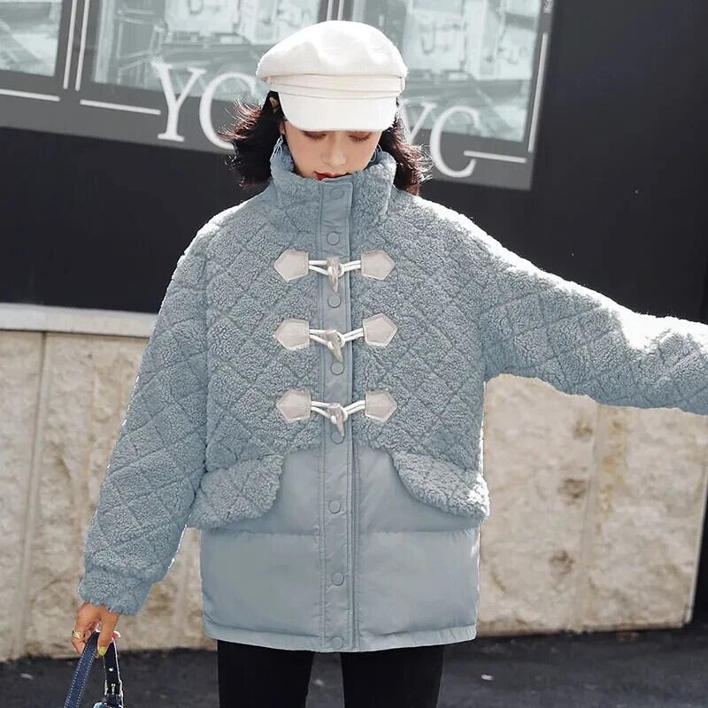 ラムフリースコート冬スプライススタンドアップカラー牛ホーンボタンパーカー粒子フリースコットンコート ウィンター 冬物