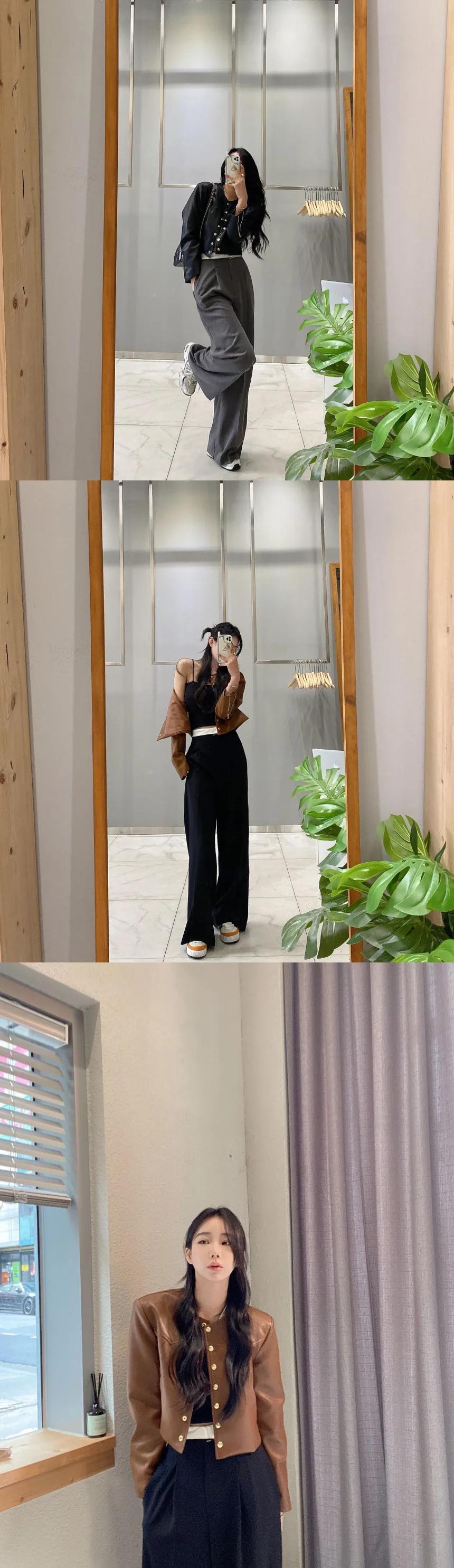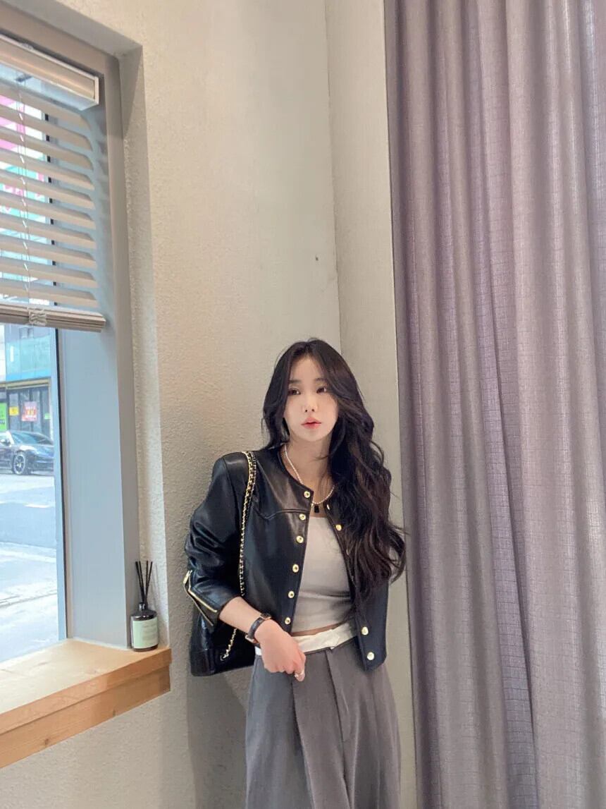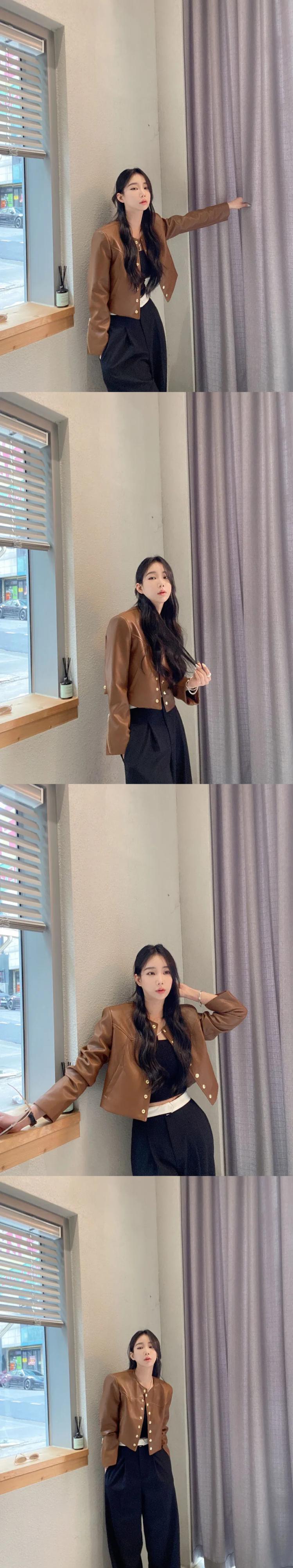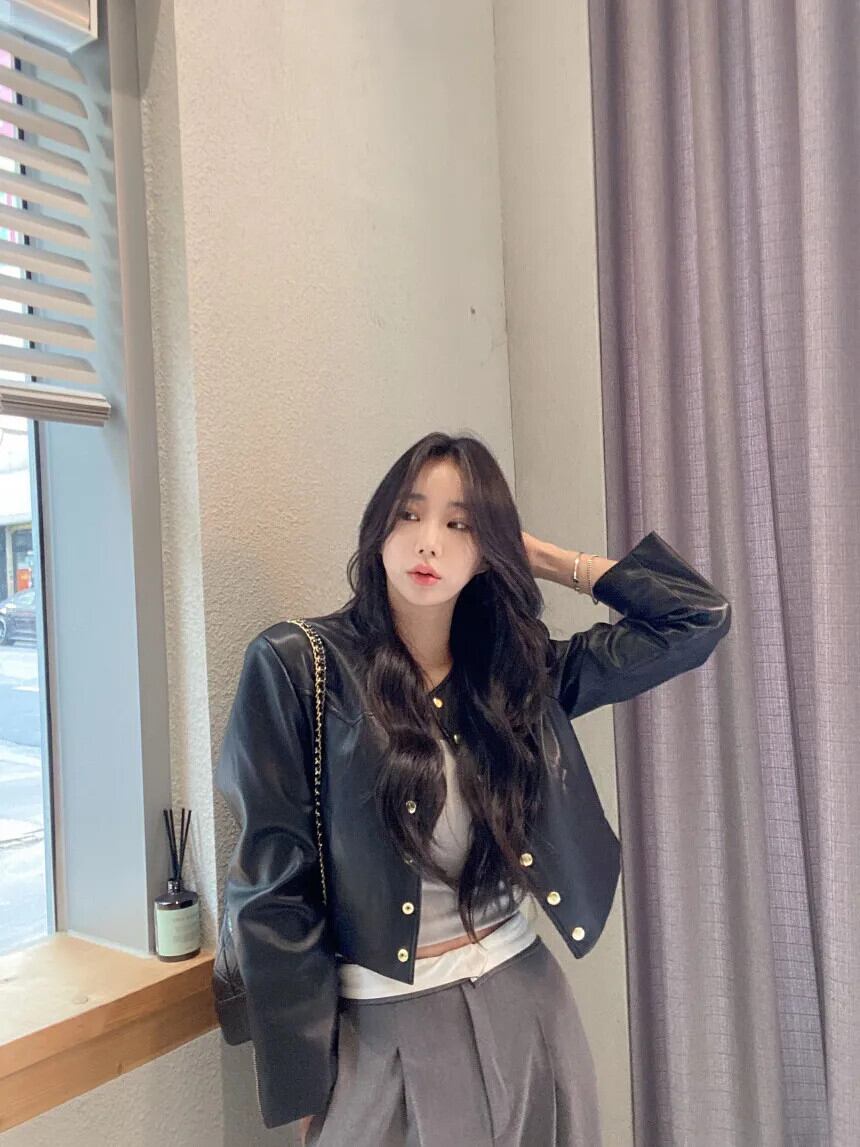 秋レザーコートトレンディ春レトロラウンドネックメタルシングルブレストルーズ PU ジャケット スプリング 春物 オータム 秋物 Oネック