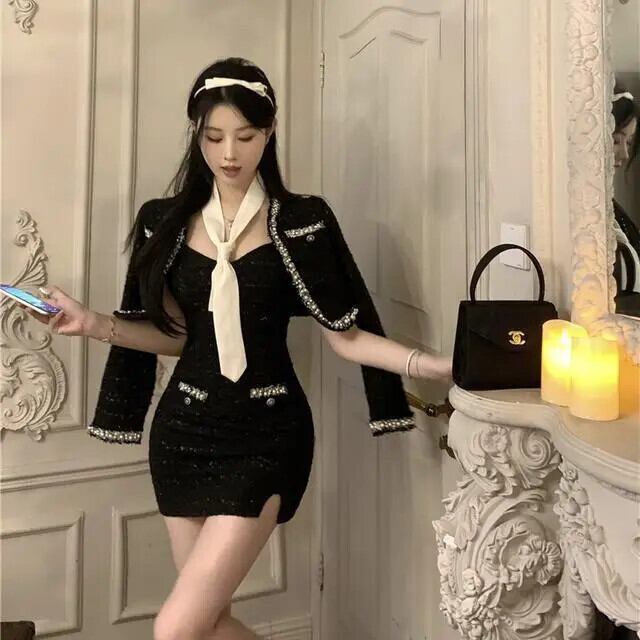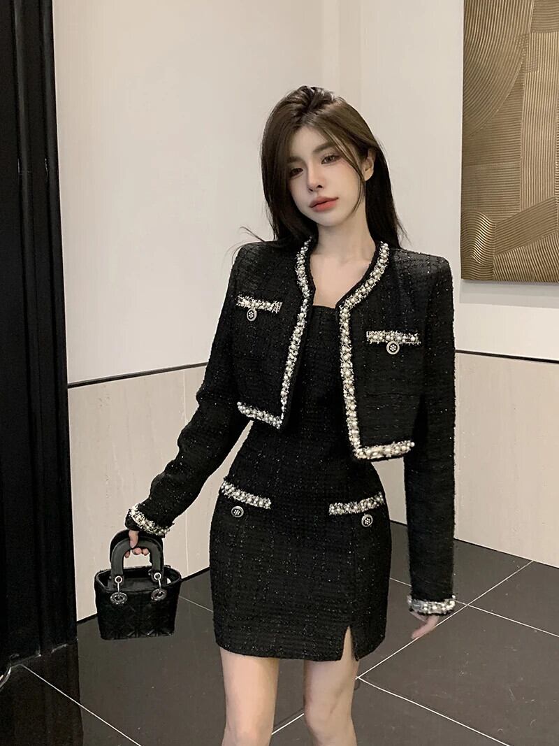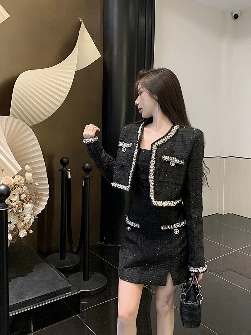 フレグランス多用途ベストスカート + スーツカーディガン 2024 秋コレクション 2 点セットスーツ オータム 秋物