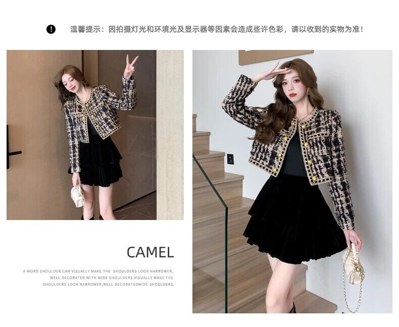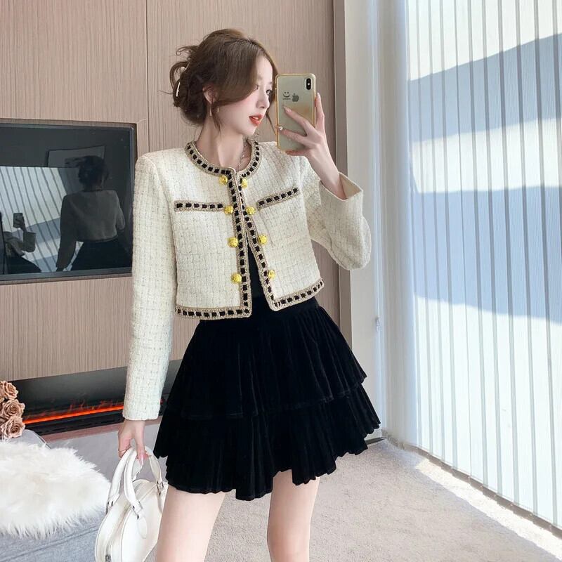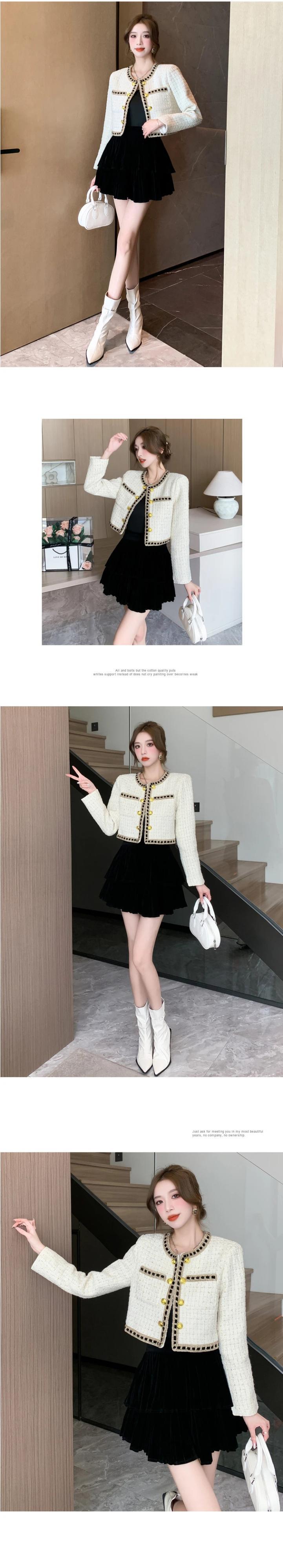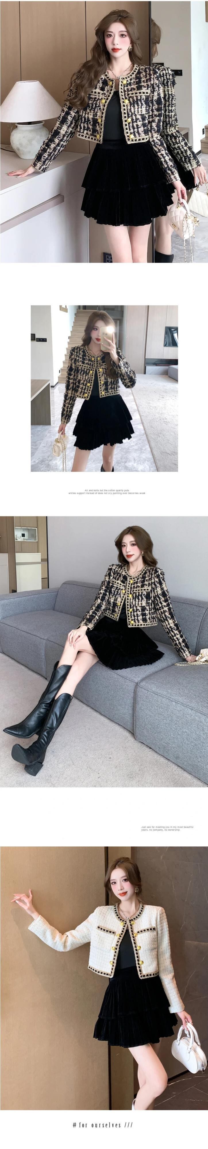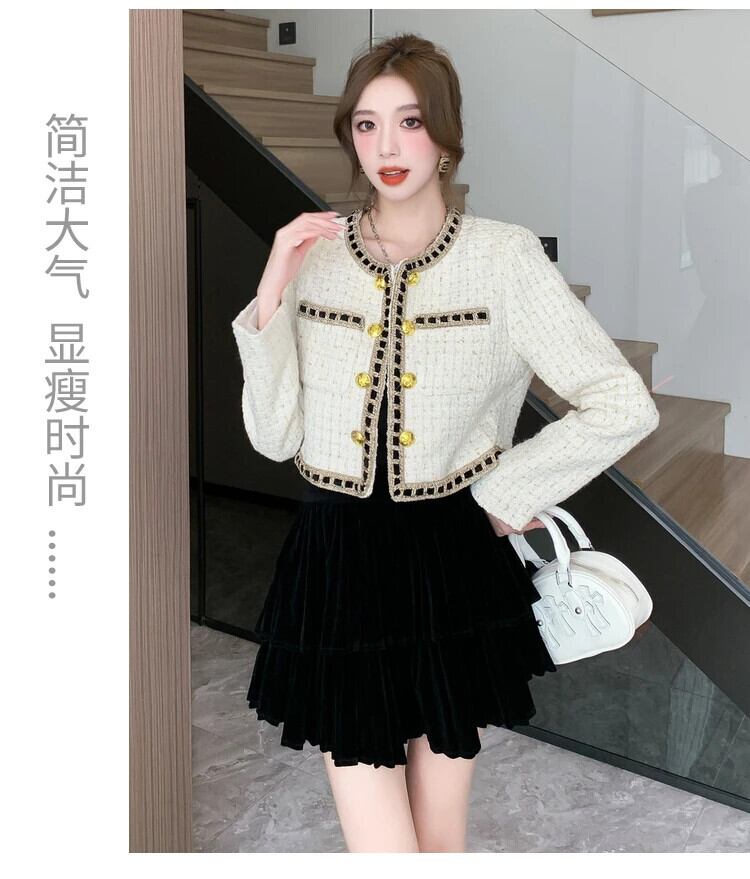 春秋香りコートショートシングルブレスト粗いウールラウンドネックジャケット スプリング 春物 オータム 秋物 Oネック