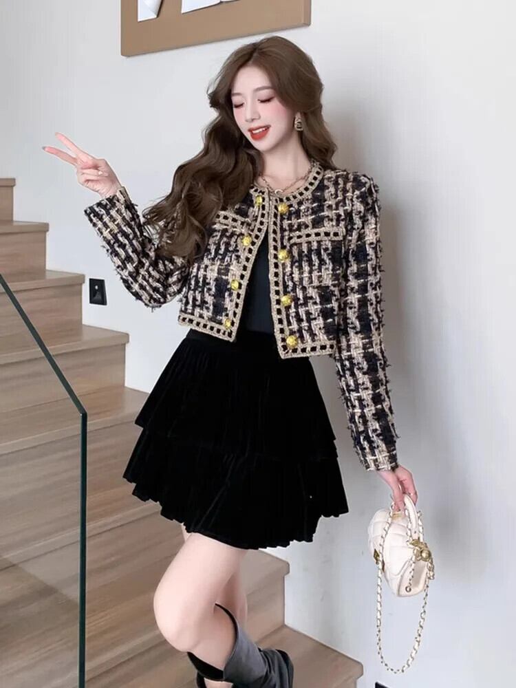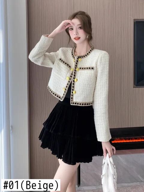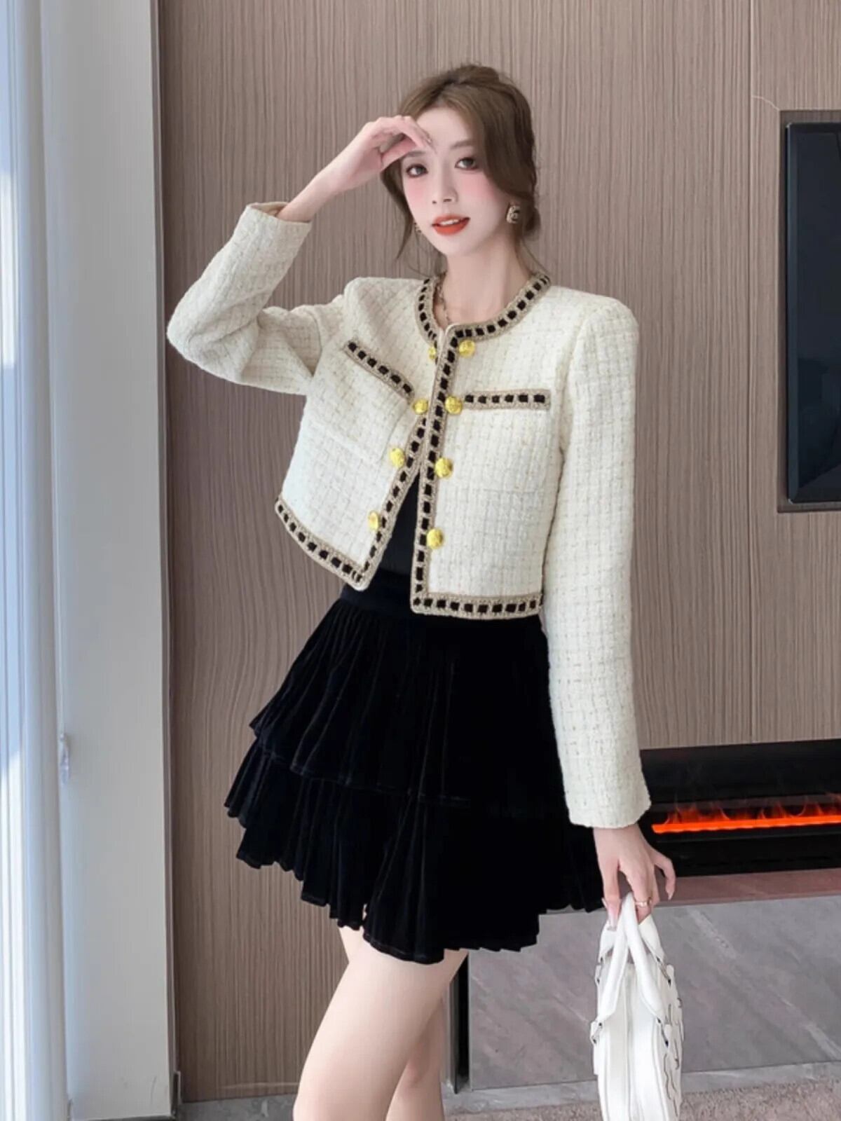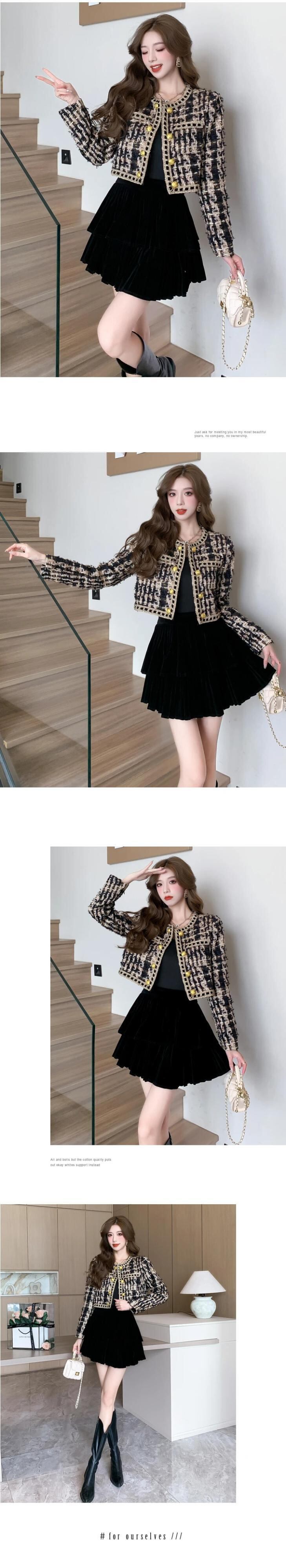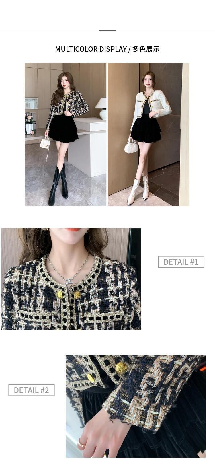 春秋香りコートショートシングルブレスト粗いウールラウンドネックジャケット スプリング 春物 オータム 秋物 Oネック